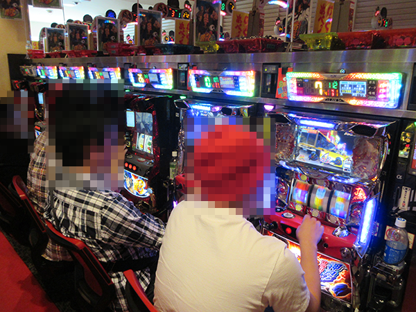 14時を過ぎた頃の20円パチスロをみると、「押忍!番長3」や「押忍!サラリーマン番長」が大にぎわい。なかには、理想的な展開に笑みを浮かべるいったプレイヤーも確認済みだ。