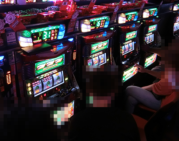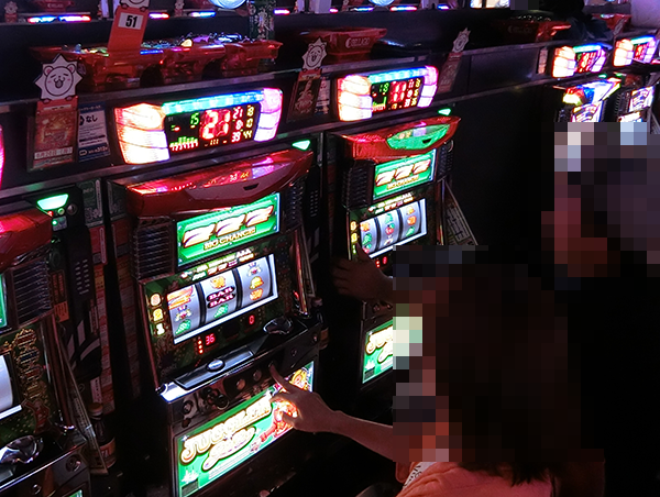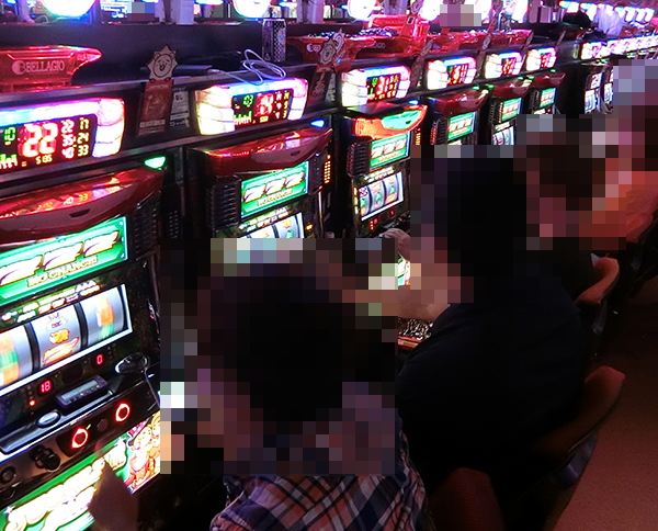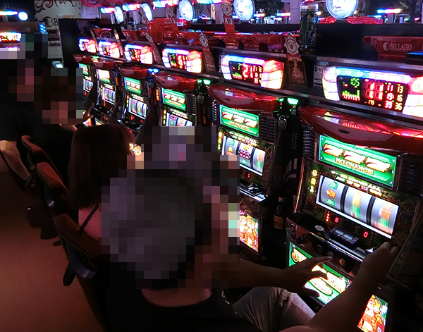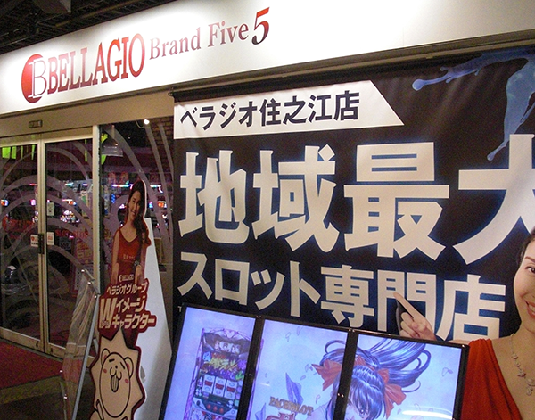 舞台となったパチスロ専門店の「ベラジオ住之江店」では、大勢のパチスロファンが遊技を楽しんでいた。