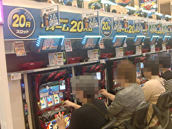 20円パチスロでは、「押忍!番長3」や「SLOT魔法少女まどか☆マギカ」が人気。プレイヤーたちは、機種の性能をじっくりと味わっているようだった。