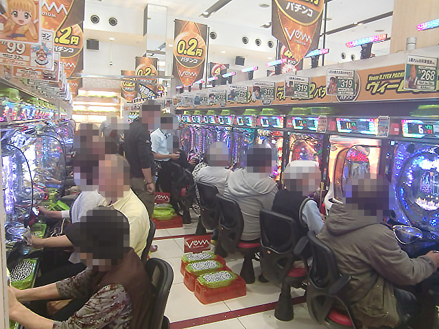 低貸し玉コーナーはパチンコが1円と0.2円の2種類、パチスロは0.5円というラインナップ。全体的に支持は厚く、0.2円パチンコはかなりの盛況ぶりだった。