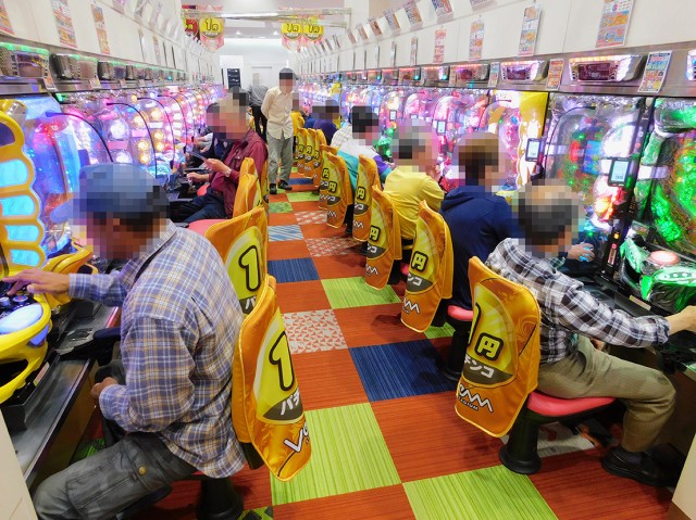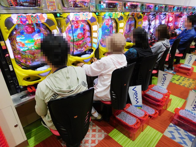 低貸し玉コーナーはパチンコ・パチスロ共に高稼働。プレイヤーたちは多彩なラインナップの中から選び抜いた機種で遊技をおこなっていたようだ。