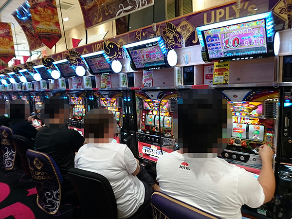 ジャグラーシリーズや「ハナビ」といったボーナスタイプの盛り上がりも大きい。プレイヤーたちの見事な活躍が見られ、心から遊技を楽しめているように思えた。