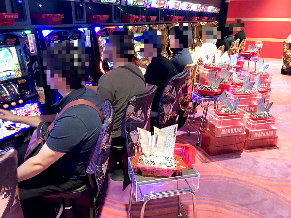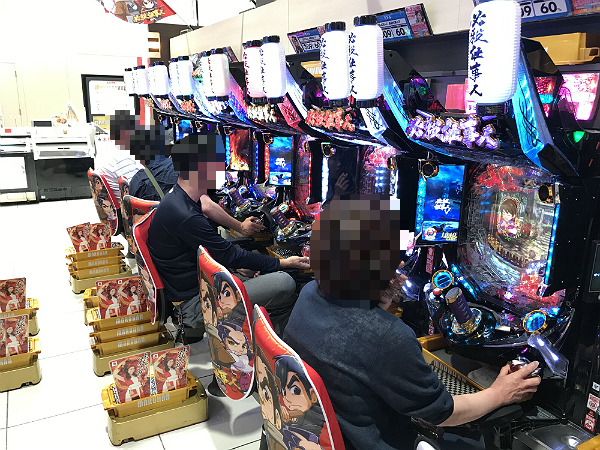 17時まわったころの4円パチンコでは、「ぱちんこCR北斗の拳7 転生」や「CR吉宗4 天昇飛躍の極」が盛況。狙い通りといった表情のプレイヤーの姿もあり、随所から華やかなムードが感じられた。