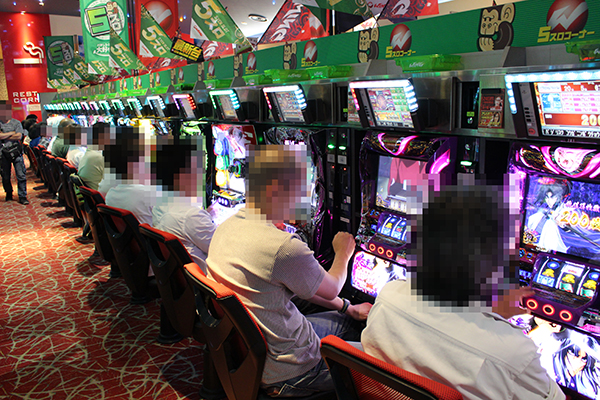 40代以上の男性が多く遊技していた20円パチスロでは、ジャグラーシリーズと「バジリスク~甲賀忍法帖~絆」が大盛況。