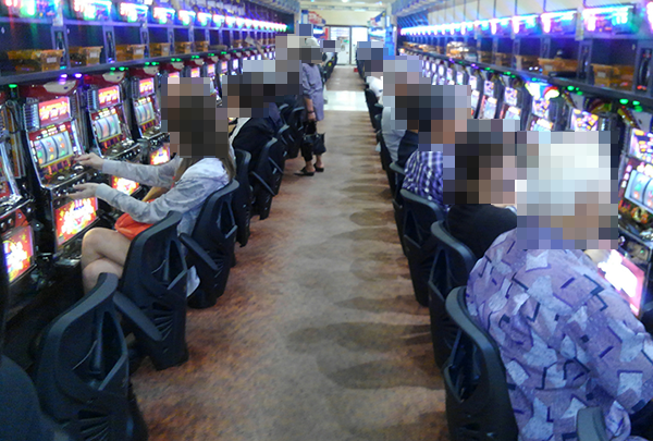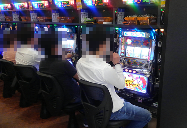20円パチスロの状況をうかがうと、「沖ドキ!」や「押忍!サラリーマン番長」などに華麗なパフォーマンスを披露するプレイヤーを目撃。明るい表情と華やかなシーンからは、満足度の高さも伝わってきた。