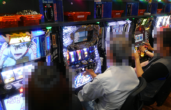 「パチスロ TVアニメーション弱虫ペダル」や「バジリスク~甲賀忍法帖~絆」など、さまざまな機種で笑顔のプレイヤーを確認した。