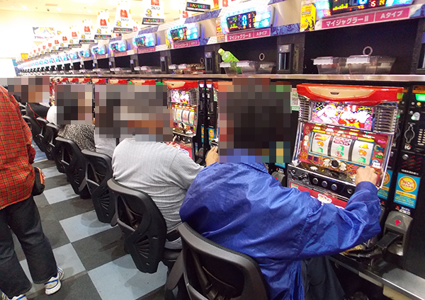 午後の20円パチスロのなかで、人気を集めていたのがジャグラーシリーズ。シンプルな告知を楽しんでいるだけでなく、機種の性能を引き出しているといったプレイヤーも確認している。