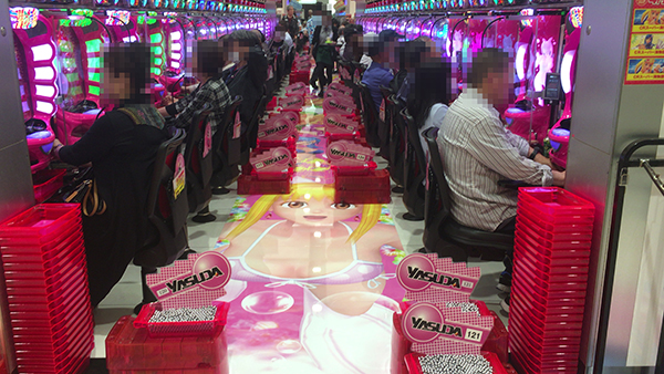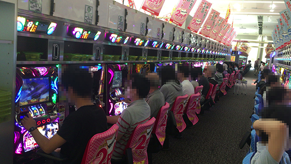 1円パチンコも空き台が少ない。海物語シリーズをメインに稼働率も常に高く、年配層の多くが笑顔を見せていたことが印象的であった。