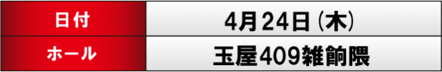 4月24日、『玉屋409雑餉隈』にて「たまピー来店取材」が実施された。前回の実施時に7台の万枚OVERが発生した同店に、この日駆けつけたファンは期待感に満ちていたのが印象に残る。同店もまたやる気を見せており、その想いを還元しようと意気込んでいた様子だ。果たしてどのような1日になったのか…さっそく詳細データとともに、店内の様子をお伝えしていこう!