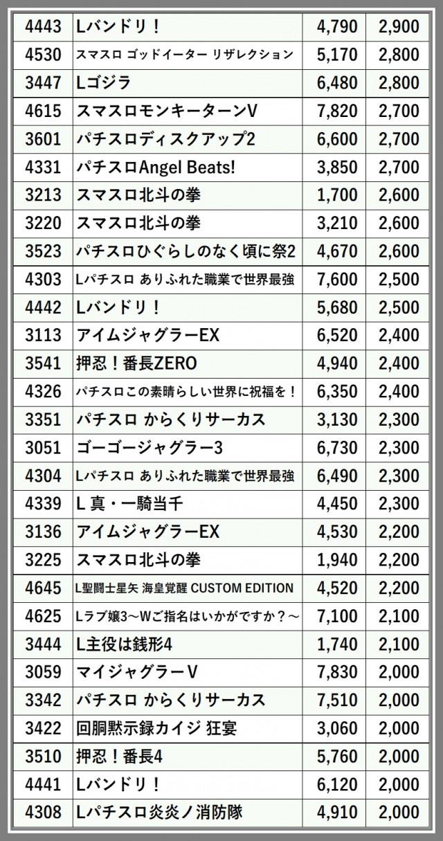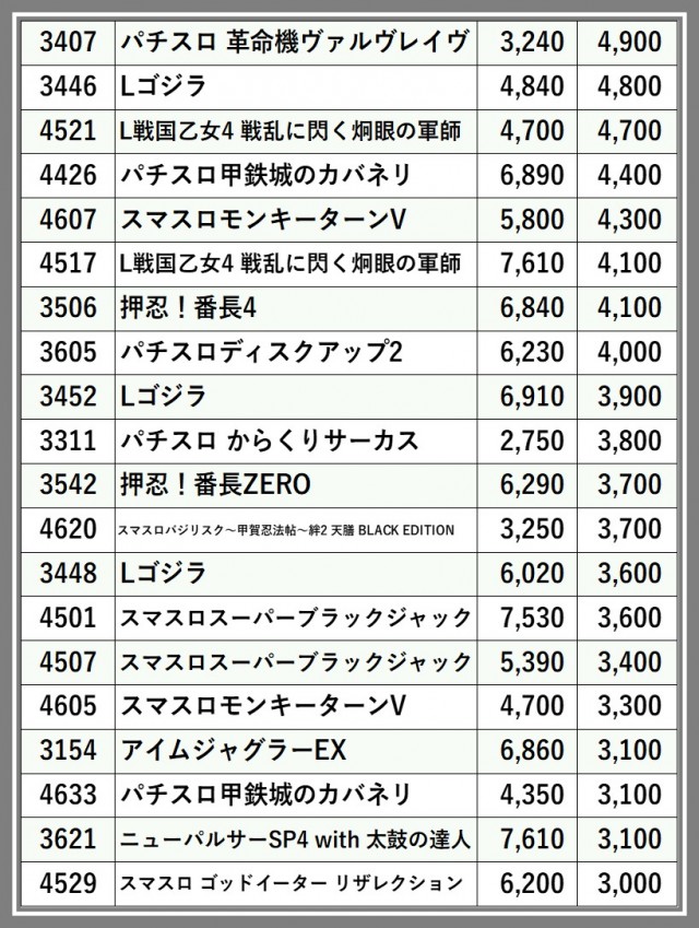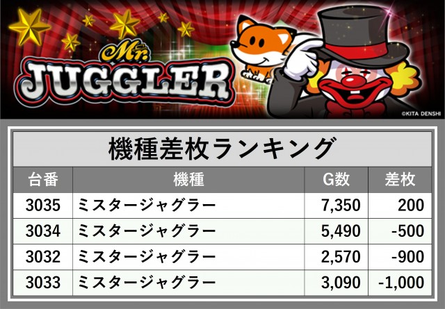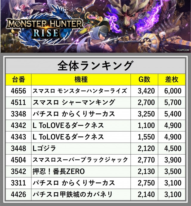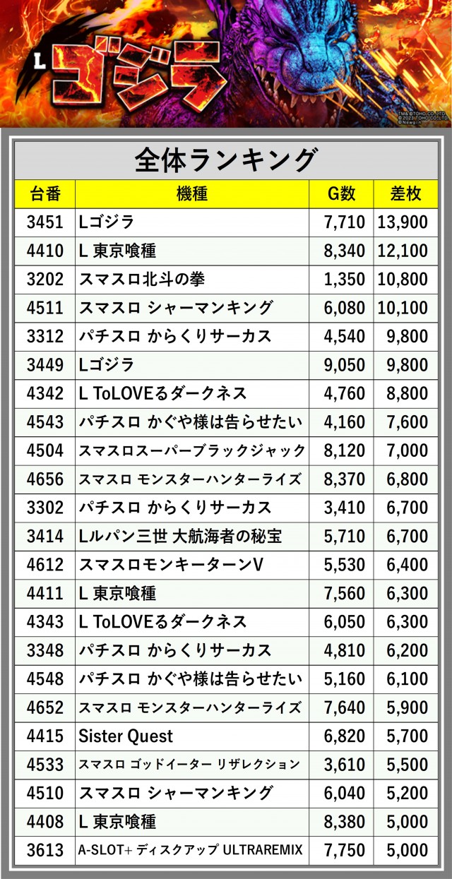 厳選された取材対象機種をはじめ、その他スロット全体から好記録が飛び出した!プレイヤーが楽しんだ1日を下記データにて振り返ってみて欲しい。