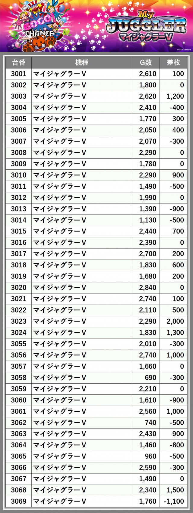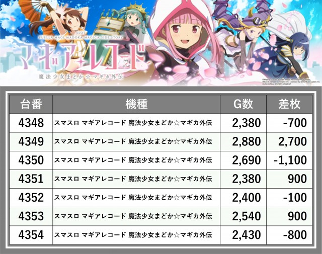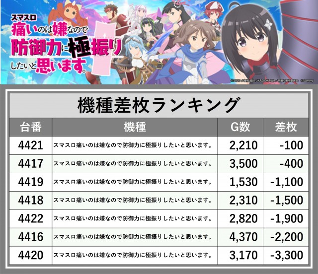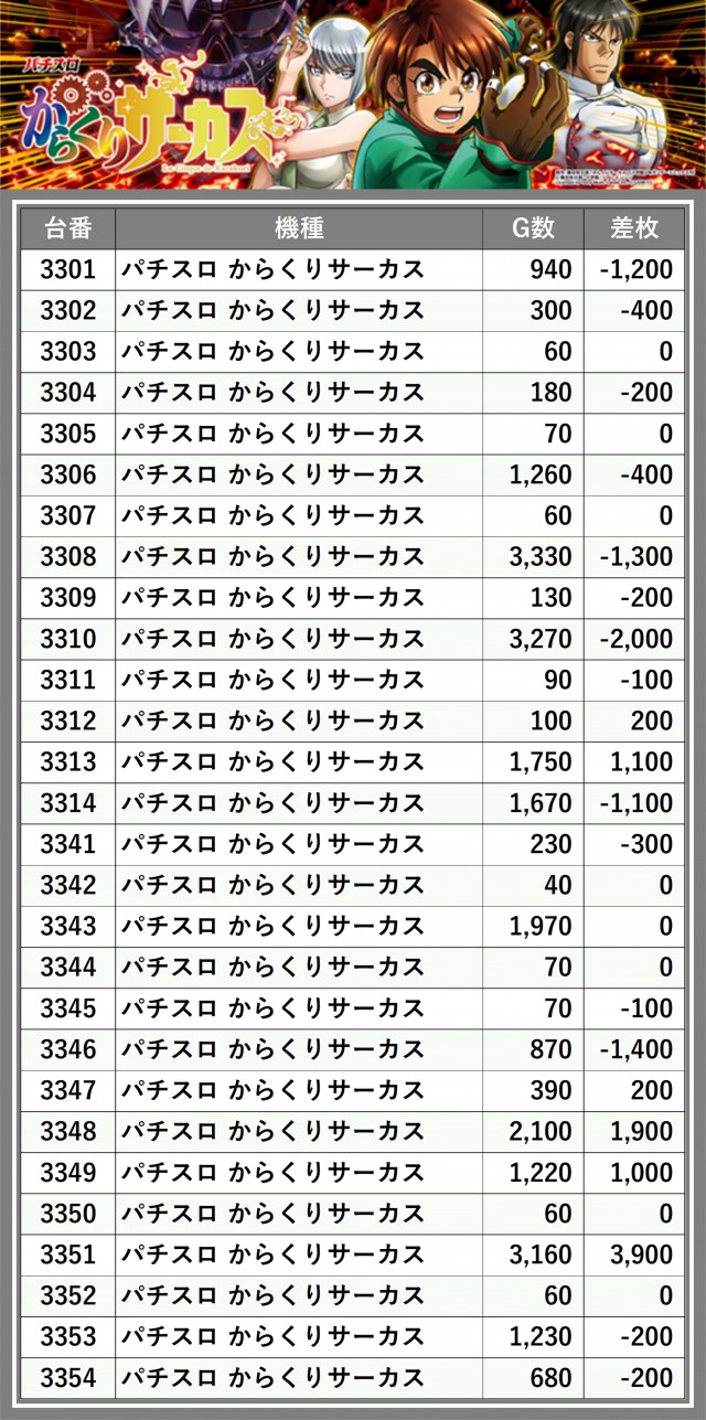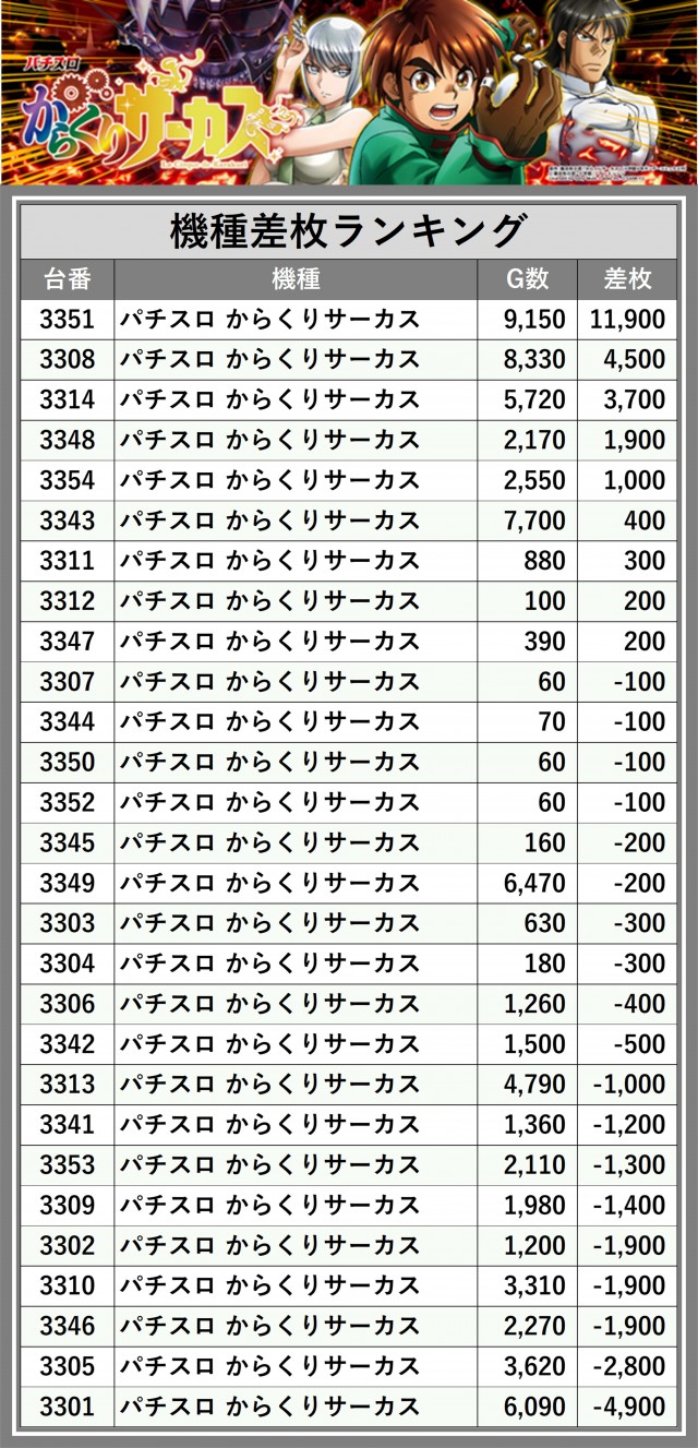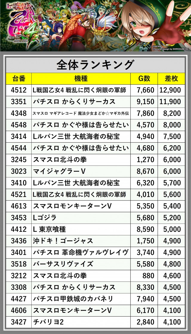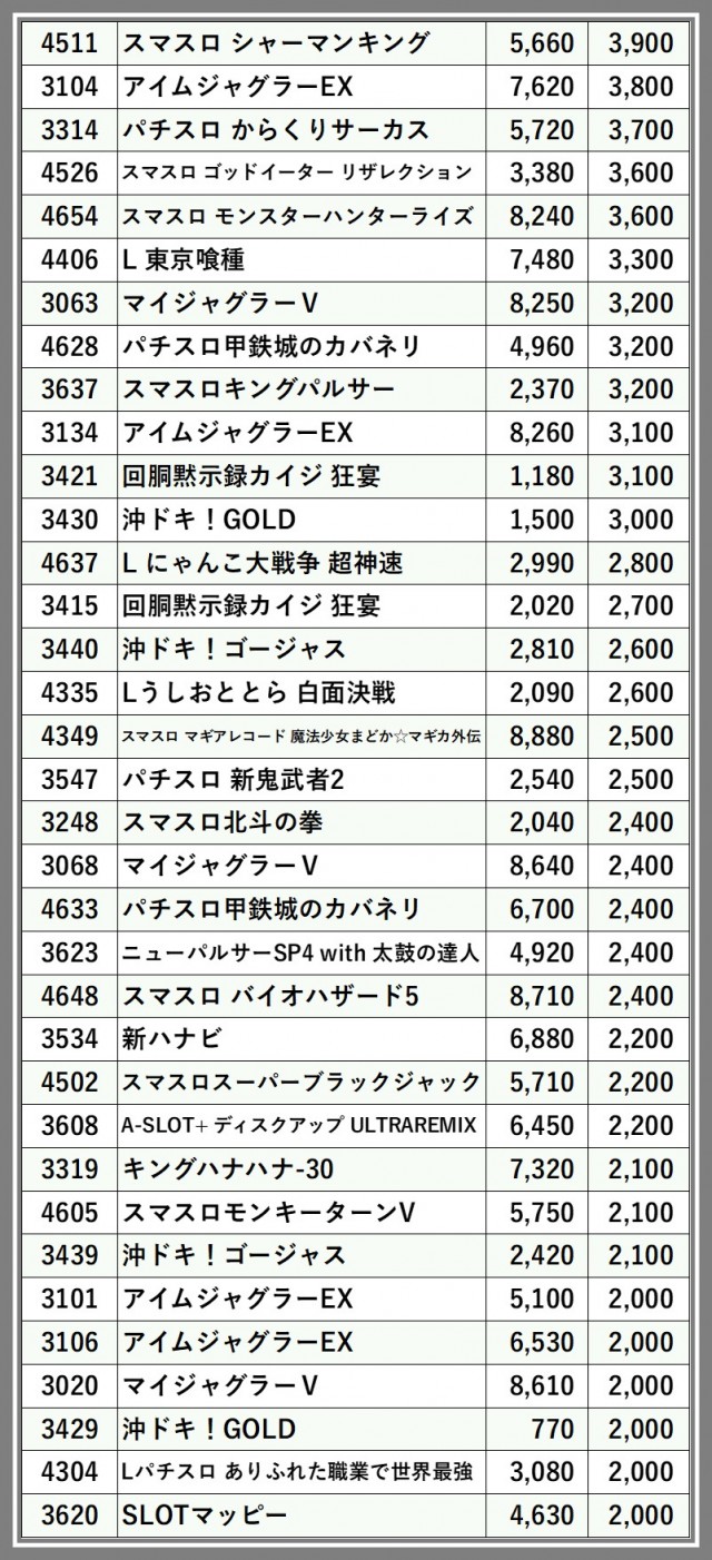 ※差枚数順に掲載しています