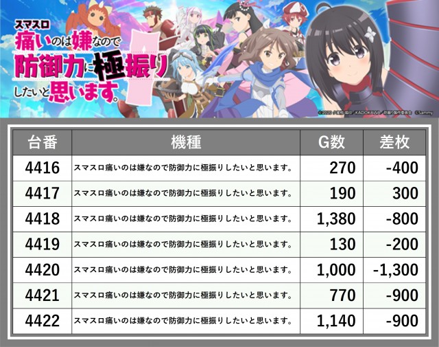 厳選された取材対象機種をはじめ、その他スロット全体から好記録が飛び出した!プレイヤーが楽しんだ1日を下記データにて振り返ってみて欲しい。
