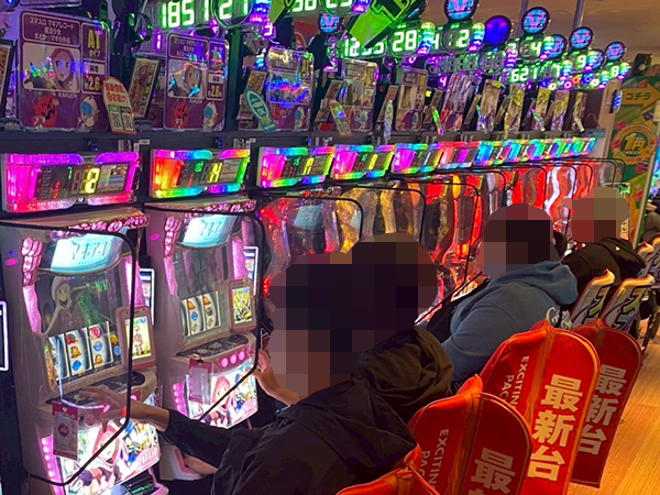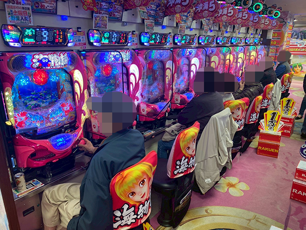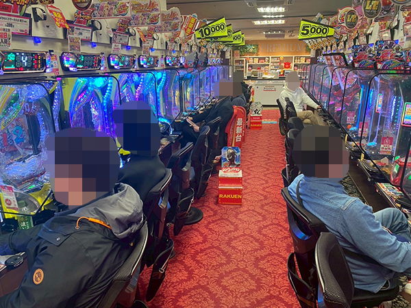 取材時は既に多くのプレイヤーが集結し、パチンコ・パチスロを問わずにぎやかな状況となっていた。