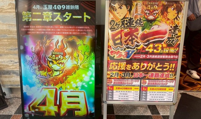 2台の万枚OVERを達成した『パチスロ かぐや様は告らせたい』の活躍はもはや説明不要だろう。他にも『スマスロモンキーターンV』で5,000枚OVERが続出し、尚且つ万回転OVERも確認でき、終日を通して打ち込まれた様子だ。さらに『スマスロ北斗の拳』『スマスロ モンスターハンターライズ』とスマスロ人気機種が目立つ形となった!一方で、ノーマルタイプも大きな熱気を生み出しており、『マイジャグラーⅤ』は2台の4,000枚OVERを筆頭に4桁プラス台が多数発生していた!これら優秀機種がポテンシャルを秘めていたのは明らかで、遊技していたファンは笑顔を覗かせていたのが印象的だ。