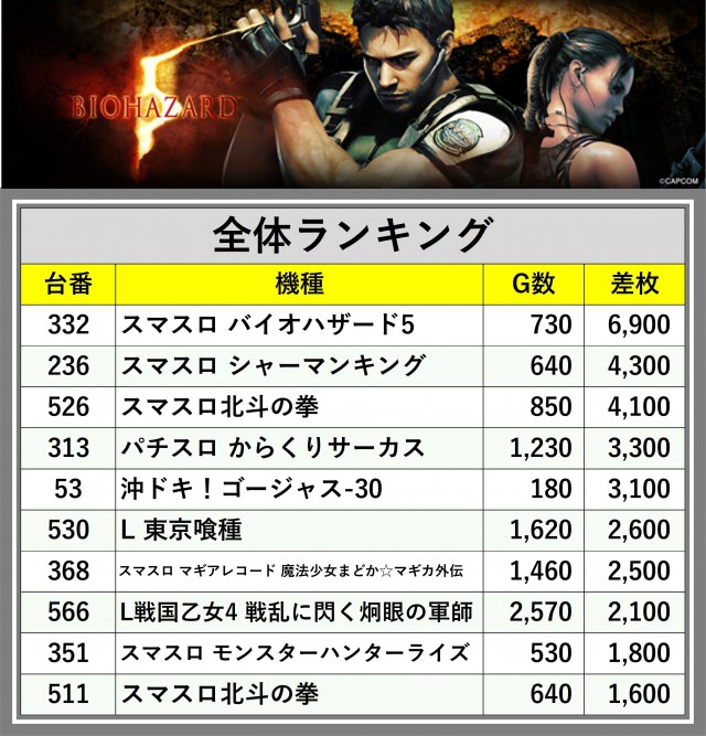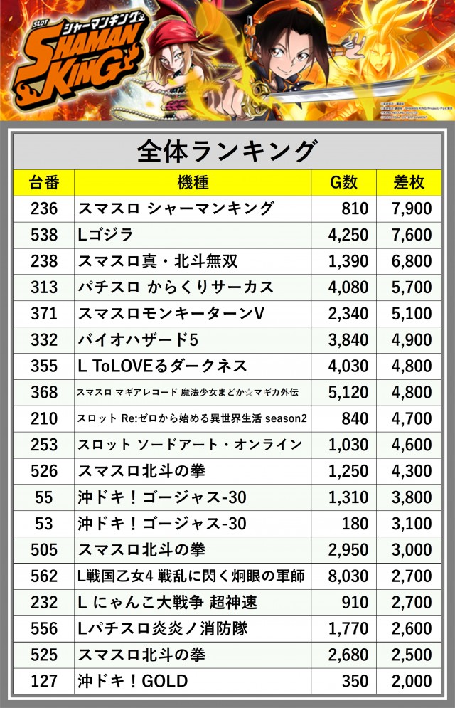 厳選された取材対象機種をはじめ、その他スロット全体から好記録が飛び出した!プレイヤーが楽しんだ1日を下記データにて振り返ってみて欲しい。
