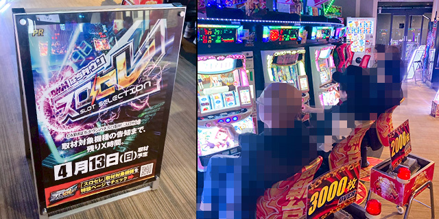 4月13日(日)メガサイバースロットパチンコ市原店にて、DMMぱちタウンの新感覚取材「スロセレ」を実施。