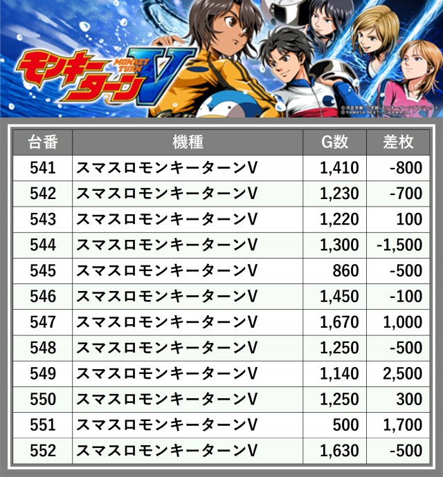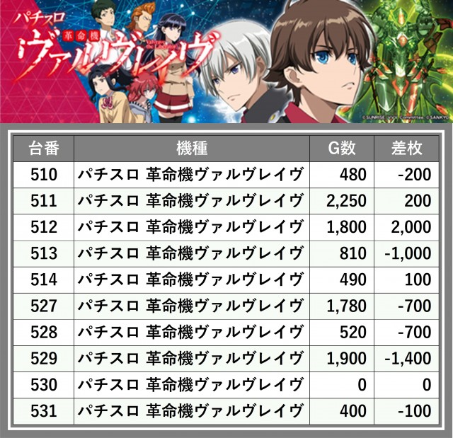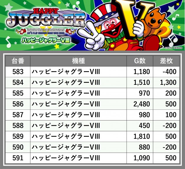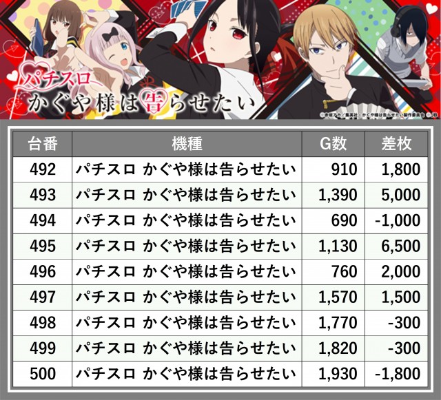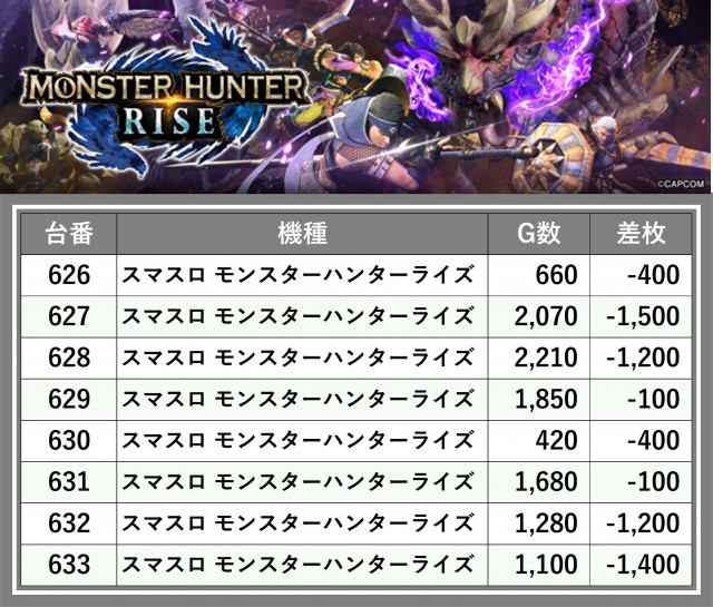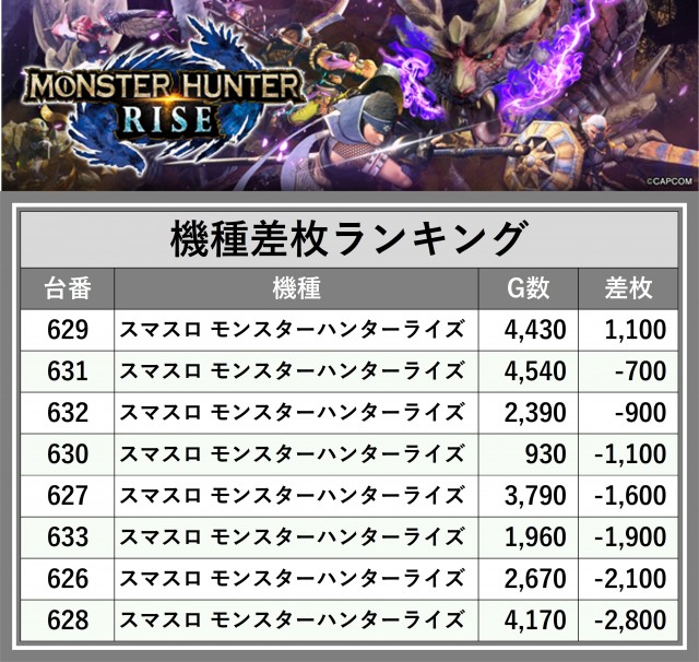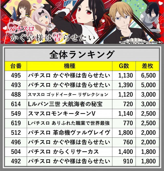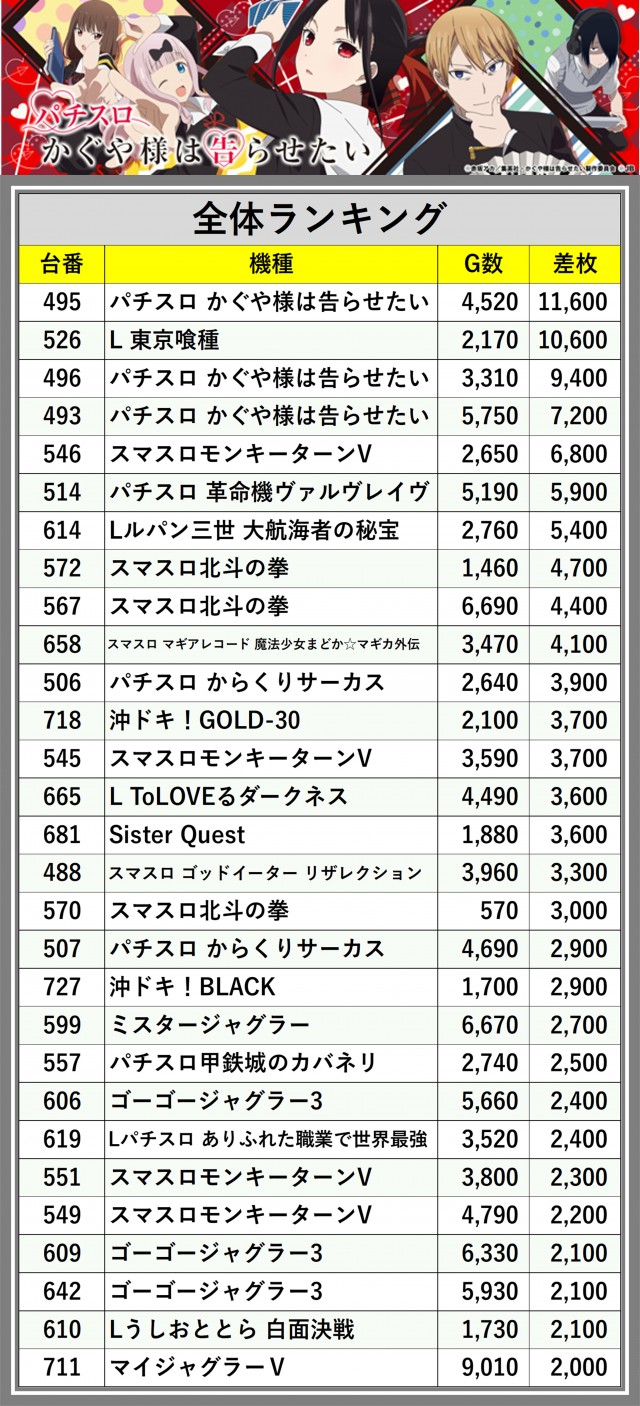 ※差枚数順に掲載しています