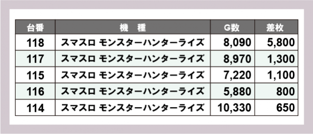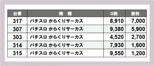 ※差枚数順に掲載しています