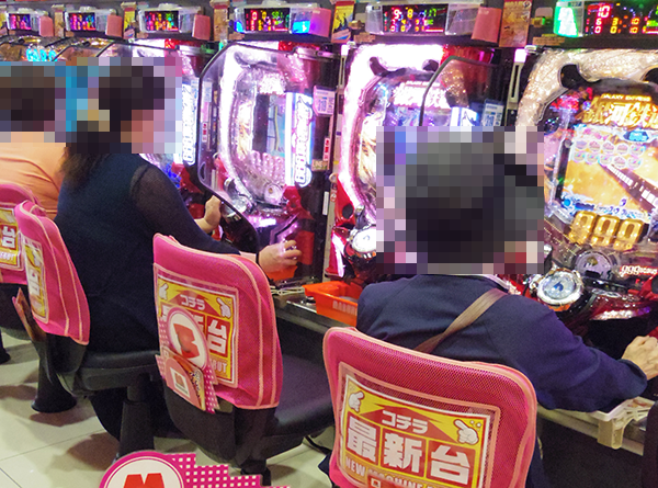 このほかに、新台の「パチスロ テイルズ オブ シンフォニア」や「パチスロ北斗の拳 転生の章」、ジャグラーシリーズなど、いくつもの場所でにぎやかな光景を確認している。
