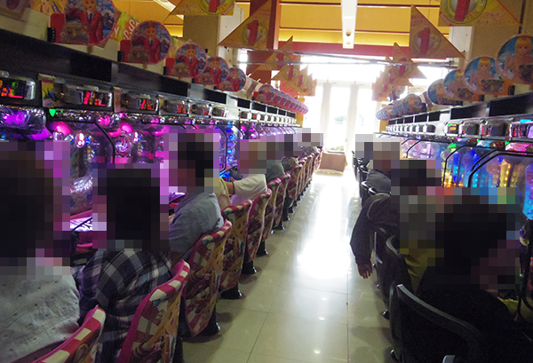 この日もたくさんのプレイヤーが訪れており、パチンコ・パチスロともに活気づいていた。