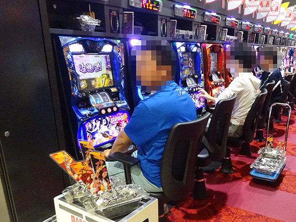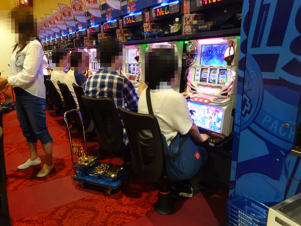 14時ごろの4円パチンコでは、「CRスーパー海物語IN沖縄4」をはじめとした海物語シリーズが活況。プレイヤーたちのうれしそうな表情からも、それぞれが充実した時間を過ごせているように思えた。