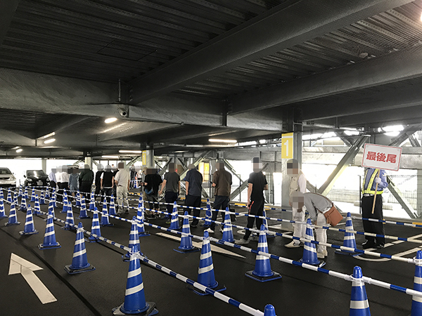 同店はパチンコ720台・パチスロ613台、総設置台数1333台を誇る静岡県内最大級のメガホール。取材当日の朝は、開店前に約90人のプレイヤーが集結し、入店の時刻を心待ちにしているようだった。