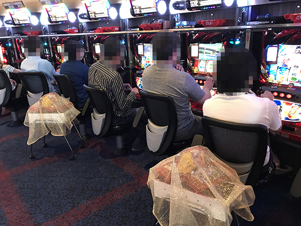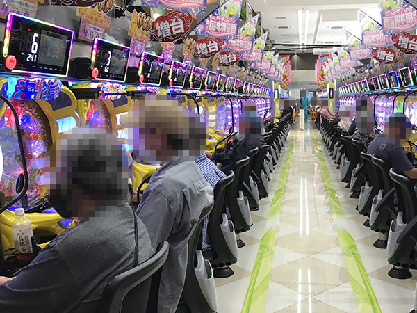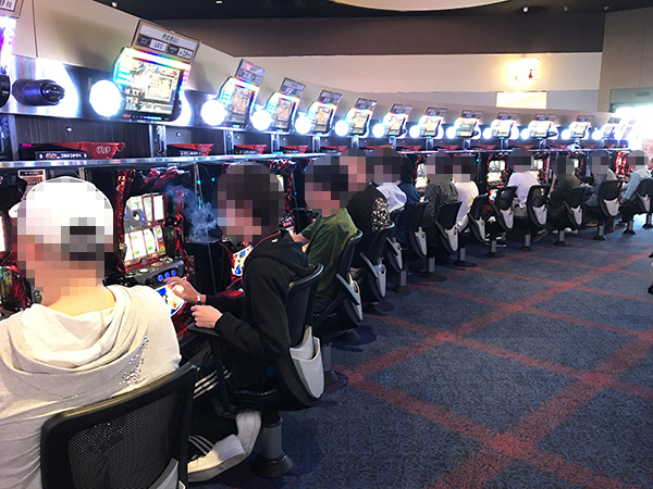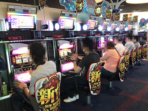 そのほかにも、「パチスロ リング 終焉ノ刻」や「スーパーミラクルジャグラー」といった導入間もない機種も、朝からほぼ満席状態となっていた。