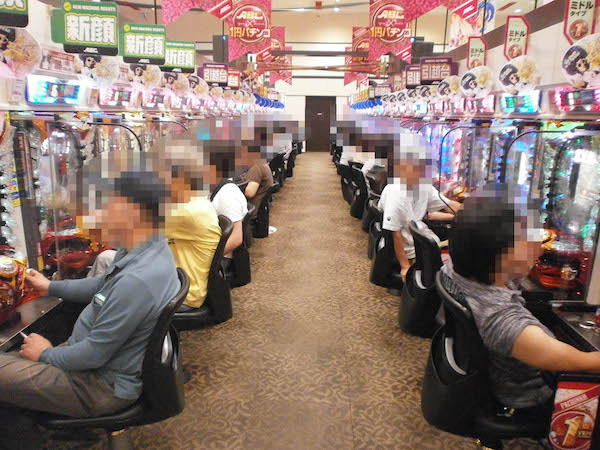 16時ごろの4円パチンココーナーでは、「CRぱちんこ必殺仕事人V」や「ぱちんこCR北斗の拳7 転生」などで、機種のポテンシャルを最大限に発揮するプレイヤーと遭遇。きらびやかな光景が広がっていた。