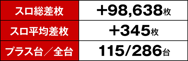 今回は2台の10,000枚オーバー台が現れ、前回の雪辱を晴らしてくれた。なおこの日のパチスロ島におけるプラス差枚の総台数は115台!約2.5台に1台がプラス差枚という、理想的な環境であった。これだからRED取材の日は侮れないッ!