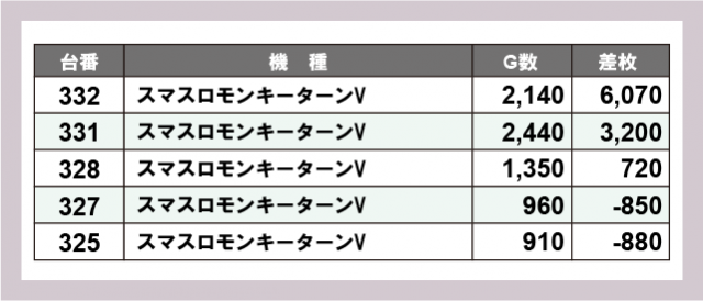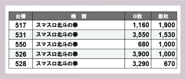 ※差枚数順に掲載しています
