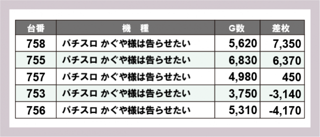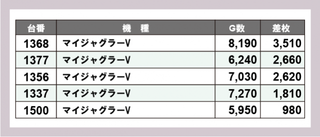 ※差枚数順に掲載しています