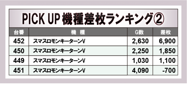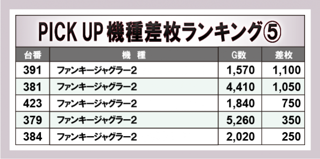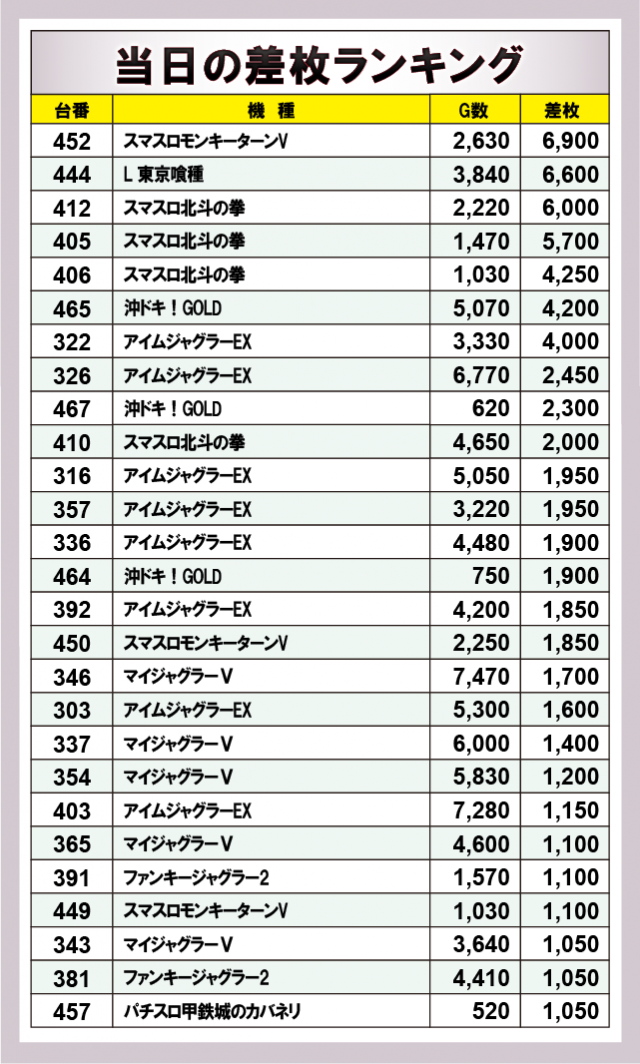 機種単位での活躍を見ても、ランキングトップ30にランクインした機種がまとまりのある出玉を確保しており、優秀機種から熱気が放たれたという印象を受けるばかりだ。