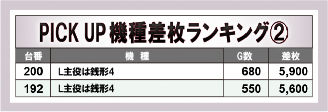 特に盛り上がっていたのが上表の4機種だ。なかでも『L主役は銭形4』は設置2台ともが5,000枚OVERと素晴らしい記録を叩き出した!人気スマスロ機を筆頭にポテンシャルを発揮していた様子が窺え、しっかりと期待に応えていたと言えるだろう。
