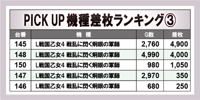 ※差枚数順に掲載しています。