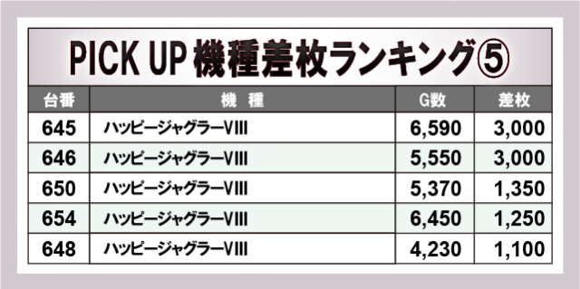 万枚OVERが発生した『Lスーパービンゴネオ』『Lパチスロ ありふれた職業で世界最強』の他にも『Lルパン三世 大航海者の秘宝』でもまとまった出玉を確保する台が複数存在し、遊技していたファンは大きな手応えを手にしていたことだろう。また、大人気ジャグラーシリーズから『アイムジャグラーEX』『ハッピージャグラーVⅢ』で3,000枚OVERが複数うまれ、店内全体が活気にも満ちていたことから、しっかりと期待に応えていたようだ。