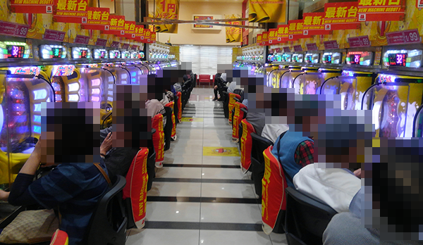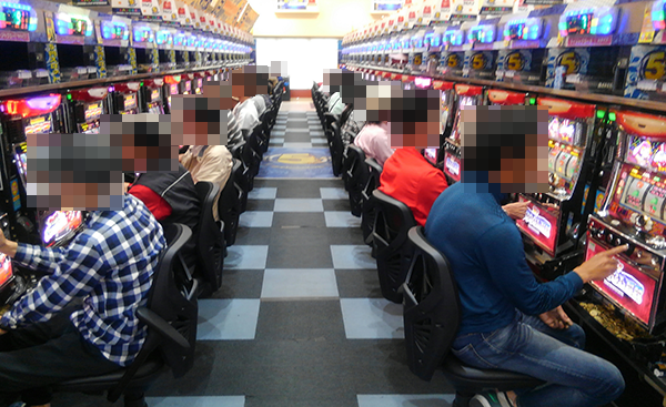 5円パチスロの稼働率も高く、シマ内は楽しげな雰囲気。