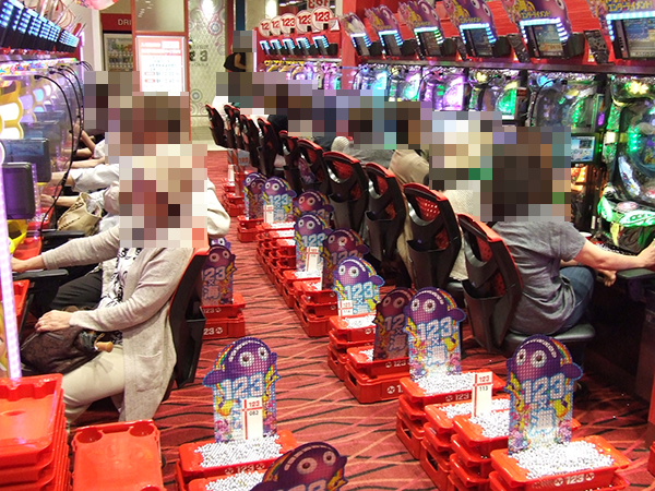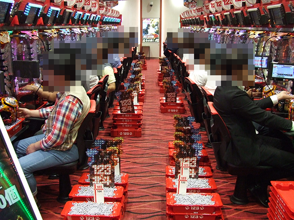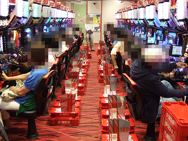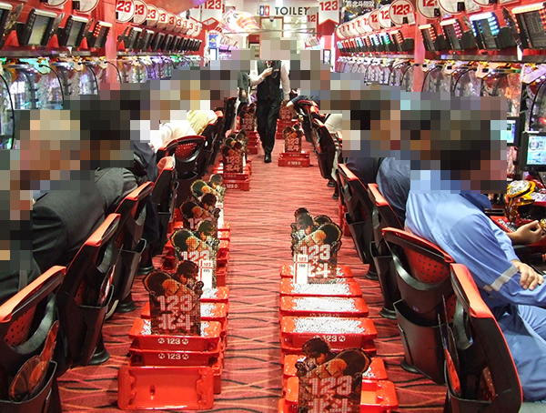 午後の4円パチンコでは、海物語シリーズと「CRぱちんこ必殺仕事人Ⅴ」が大盛況。機種の性能を引き出せているようなプレイヤーが多く、シマ全体が活気づいていた。