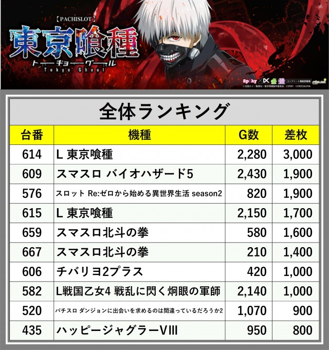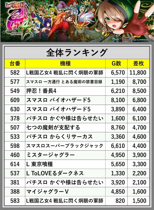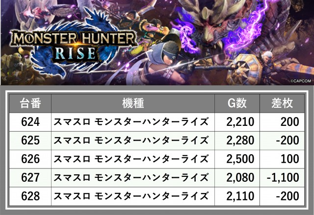 厳選された取材対象機種をはじめ、その他スロット全体から好記録が飛び出した!プレイヤーが楽しんだ1日を下記データにて振り返ってみて欲しい。