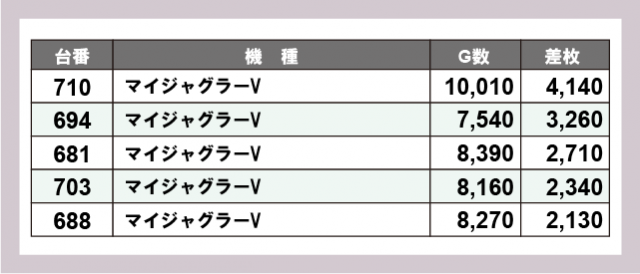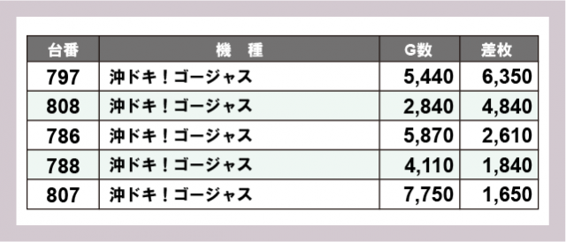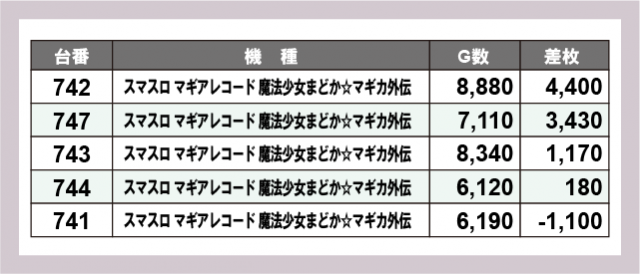 ※差枚数順に掲載しています