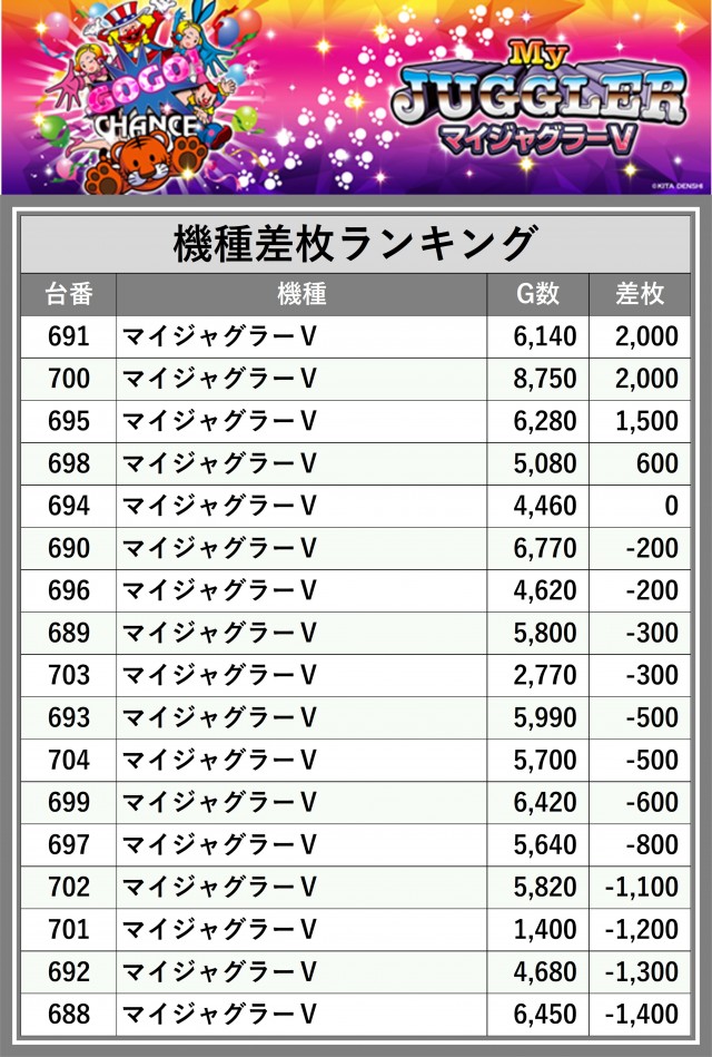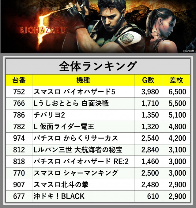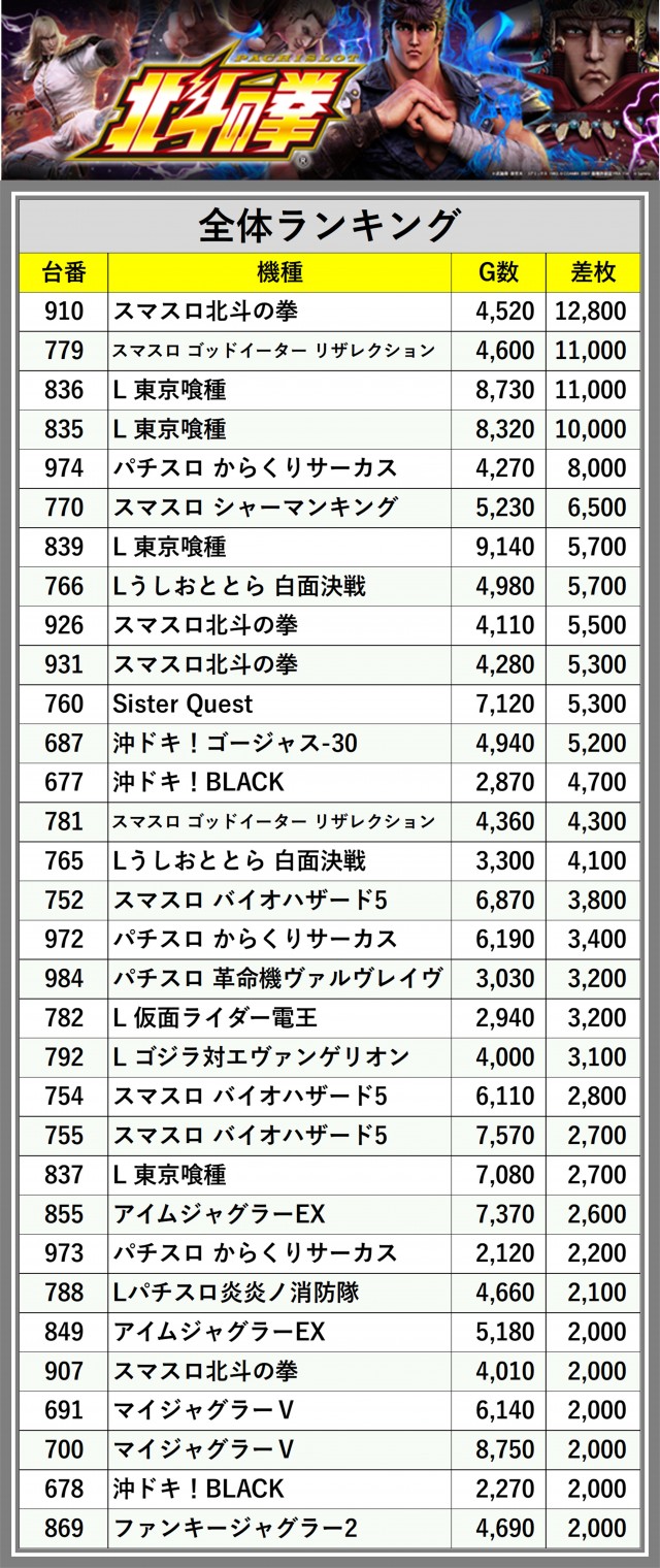 厳選された取材対象機種をはじめ、その他スロット全体から好記録が飛び出した!プレイヤーが楽しんだ1日を下記データにて振り返ってみて欲しい。