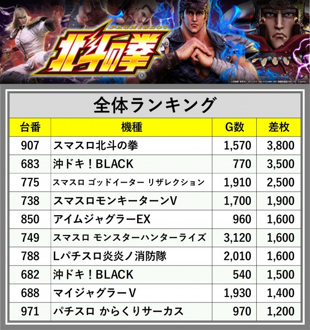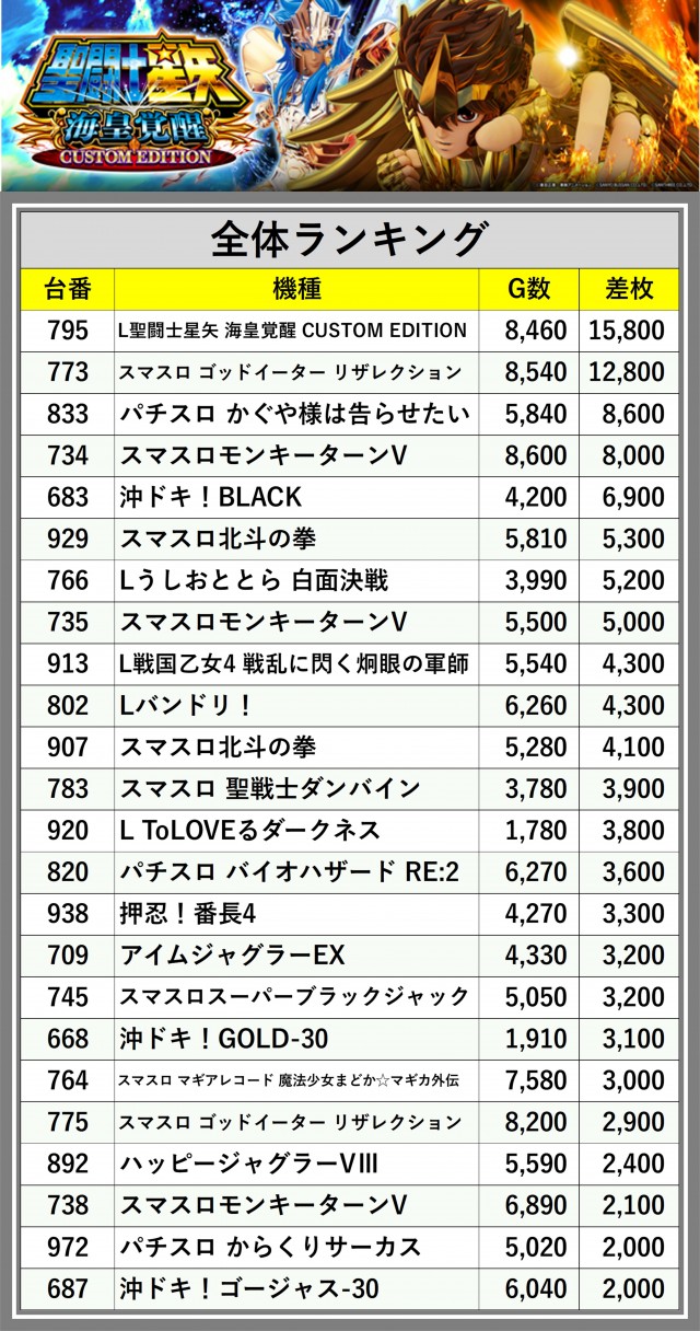 ※差枚数順に掲載しています