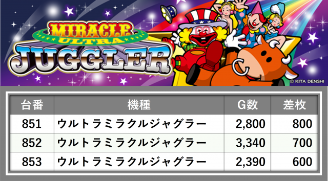 厳選された取材対象機種をはじめ、その他スロット全体から好記録が飛び出した!プレイヤーが楽しんだ1日を下記データにて振り返ってみて欲しい。