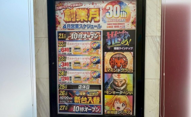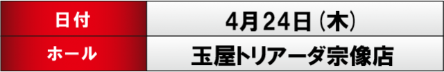 4月24日、『玉屋トリアーダ宗像店』にて「たまピー来店取材」が実施された。連続実施最終日となる取材時の店内は多くのファンたちで活気に溢れ、店内の各所から良台が出現するほどの盛り上がりを確認できた。さっそく以下から、詳細データとともに店内の様子をお伝えしていこう!