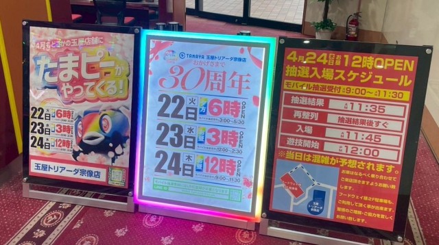 4月23日、昨日につづき『玉屋トリアーダ宗像店』にて「たまピー来店取材」が連続実施された。周年日2日目でもあり、取材時は多くのファンたちで活気に溢れ、注目すべきポイントが随所に見られた。果たしてどのような展開を繰り広げたのか…さっそく詳細データとともに、店内の様子をお伝えしていこう!