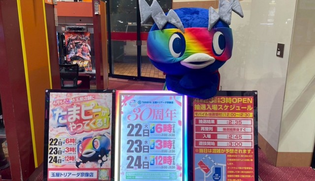 4月22日、この日グランドオープン30周年を迎えた『玉屋トリアーダ宗像店』にて「たまピー来店取材」が実施された。夕方6時開店となった当日は、誰もが高い期待を抱いており、ファンは心の底からワクワクしていたのではないだろうか。期待も高まる中、果たしてどのような1日になったのか!?さっそく詳細データとともにホール内の様子をお伝えしていくぞ!