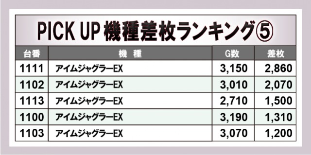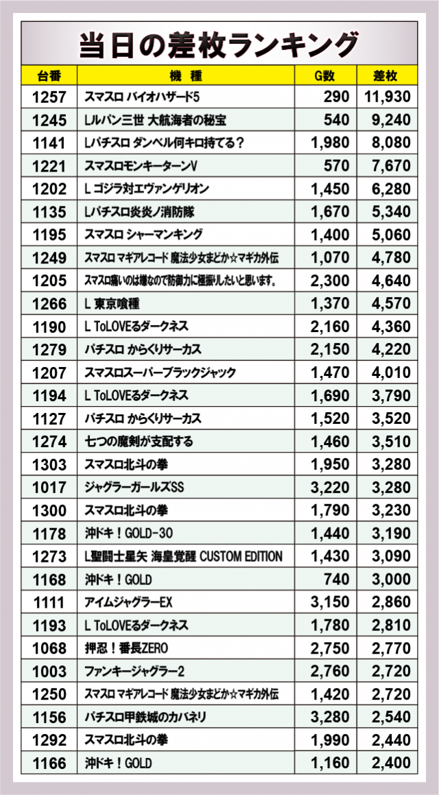 ※差枚数順に掲載しています。