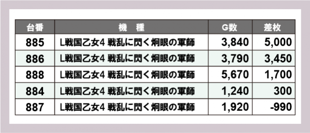 ※差枚数順に掲載しています