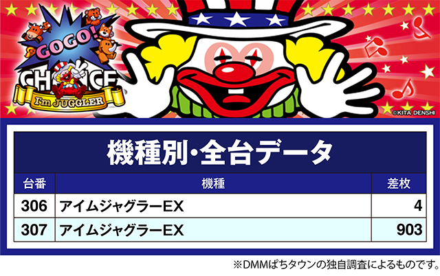 2台設置の「アイムジャグラーEX」は、どちらの台も結果を残した。