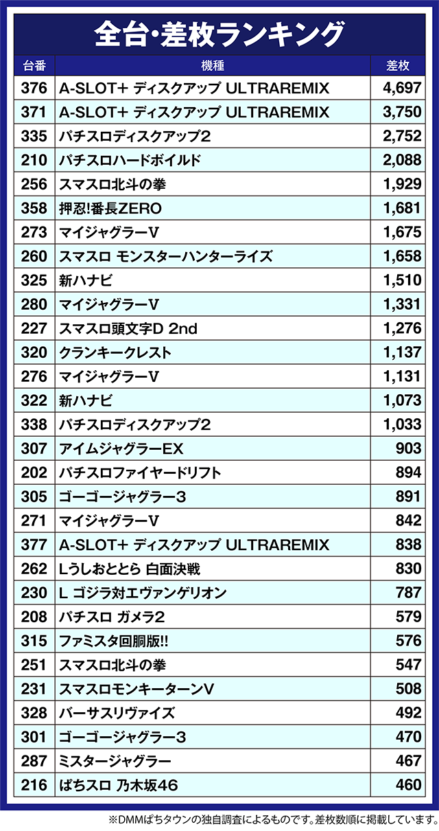 「A-SLOT+ ディスクアップ ULTRAREMIX」の376番台が4,600ptオーバー!!