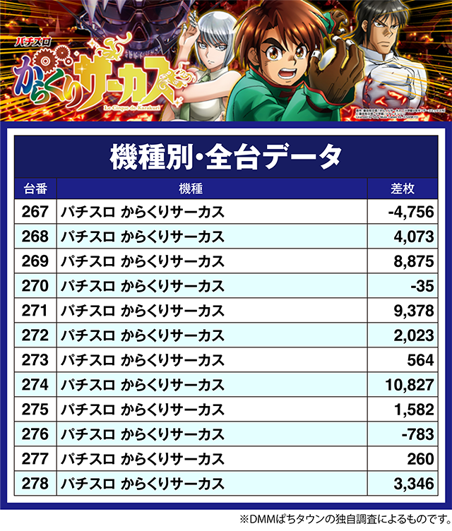 「パチスロ からくりサーカス」の274番台が10,827pt!